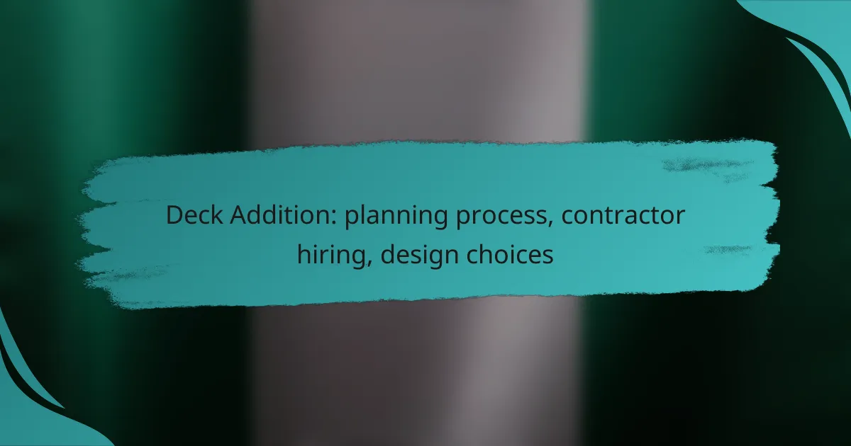 Planning a deck addition requires careful attention to budget, design, and local regulations to create a successful outdoor space. Hiring the right contractor is crucial, involving steps like checking credentials and discussing project details. Additionally, thoughtful design choices regarding materials and features will enhance both the aesthetics and functionality of your new deck.